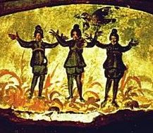 The names of Shadrach, Meshach and Abednego and their remarkable story are well known. Their story is an illustration of the battle between good and evil which is a theme that runs through the Book of Daniel. These three young Hebrew men, companions of Daniel, refused to worship the golden statue erected by King Nebuchadnezzar, since to do so would mean breaking the first two commandments. They trusted in God and were miraculously unharmed after being thrown into a fiery furnace. Whilst their names are well known, there were probably many other heroic people who also took a stand for their belief in the one true God at a time when successive kings believed that people should honour them in the same way as they honoured the gods – a stand that cost them their lives.