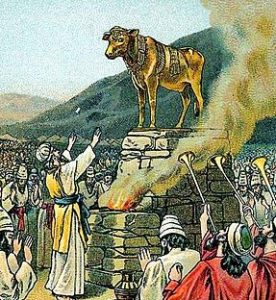 The people of Israel had not long committed to their Covenant with God when they rebelled and resorted to idolatry. While Moses was on the holy mountain for forty days, the people began to think that he might not return and they asked Aaron, who had been left in charge, to make them a “god” to go ahead of them. As he descended the mountain, Moses was understandably angry when he saw the people worshipping this “god” in the form of a golden calf. God had already done many great things for these people yet they seemed so easily to forget this and their part in the relationship. When his anger had abated, Moses decided to try and make atonement for their sin. Moses was even prepared to sacrifice himself to gain forgiveness for the people but this was not part of God’s plan. Moses was to continue to lead the people to the Promised Land. The nation would be spared but there would be punishment for those who had been unfaithful.